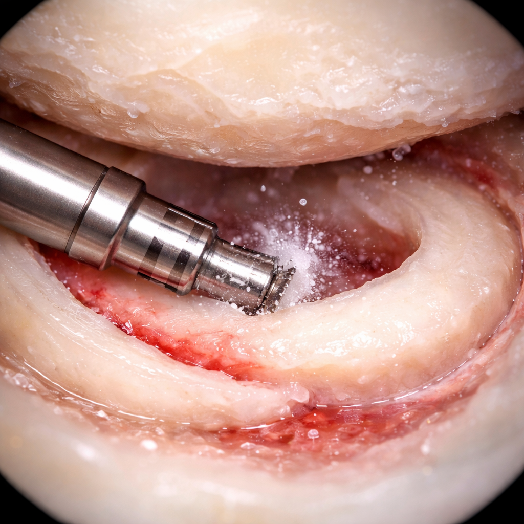 A discoid meniscus is a congenital condition where the lateral meniscus is disc-shaped rather than a crescent, making it highly prone to degenerate tears and mechanical 'clunking.' Dr. Ravi Teja specializes in 'Saucerization'—a precision arthroscopic procedure to reshape the thick tissue into a functional C-shape. While most torn discoid menisci require resection of the thin, degenerated inner portion, we prioritize 'Rim Repair' for thick tissue tears in the vascular capsular junction to preserve the joint's critical shock absorption—which accounts for 70% of the lateral compartment's load distribution.