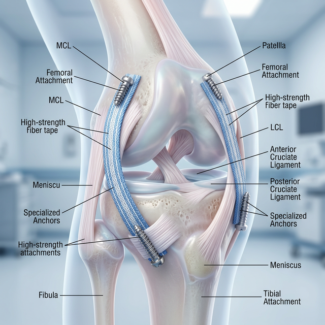 The Medial Collateral Ligament (MCL) is the primary stabilizer on the inner side of the knee. Dr. Ravi Teja utilizes advanced 'Internal Brace' technology for MCL repairs, which involves reinforcing the repaired ligament with high-strength fiber tape. For chronic or more severe cases, an anatomic reconstruction is performed to restore the natural tension and rotational stability of the joint. This approach ensures the knee is protected from the 'inward gapping' that can lead to meniscus damage and failure of other ligament reconstructions.