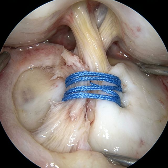 A meniscus root tear is a severe injury where the ligament anchor detaches from the bone, causing the meniscus to 'extrude' or squirt out of the joint. Dr. Ravi Teja specializes in the 'Transtibial Pull-Out' repair—a meticulous technique involving the release of scar tissue, decortication of the bony bed, and the placement of high-tensile sutures. These sutures are pulled through a precise 5mm tunnel and secured over a cortical button, restoring the joint's shock-absorbing capacity and preventing the rapid progression toward 'post-meniscectomy' osteoarthritis.