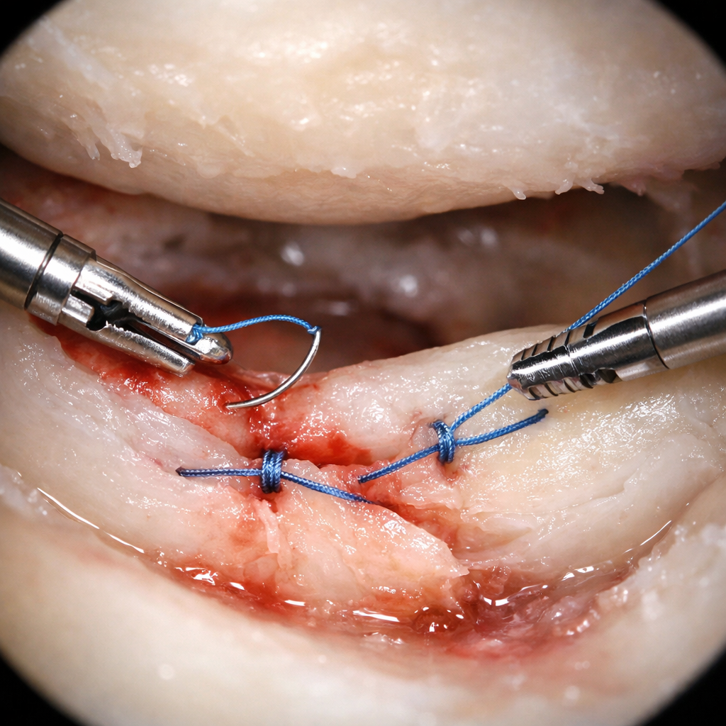 The meniscus is a specialized C-shaped cartilage that acts as a vital shock absorber between your thighbone and shinbone. Dr. Ravi Teja's philosophy is always 'Save the Meniscus.' We utilize minimally invasive arthroscopic techniques to either repair the tear using advanced suturing (Inside-Out or All-Inside techniques) or perform a partial meniscectomy to trim only the unstable fragments. Preserving as much healthy meniscus as possible is critical, as the lateral meniscus handles up to 70% of the joint's load. Success in meniscus surgery depends on the tear's location (Red-zone vs. White-zone) and the biological potential for healing.