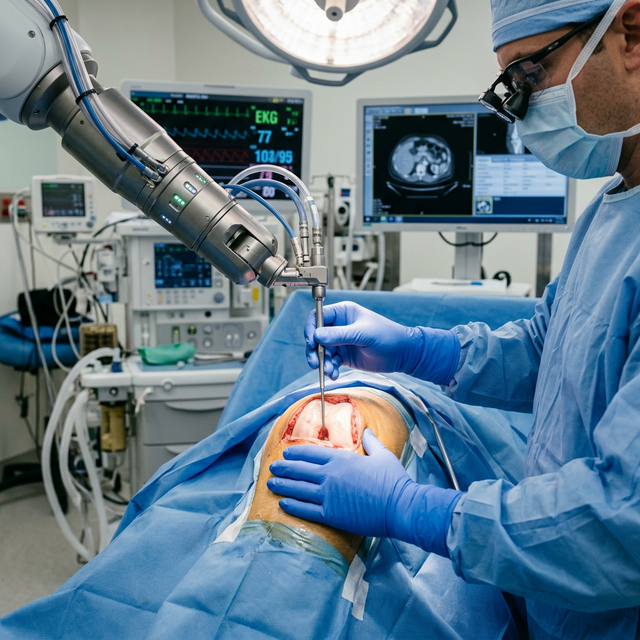 Robotic-assisted knee replacement represents the pinnacle of modern orthopedic surgery. Dr. Ravi Teja utilizes state-of-the-art robotic systems to transcend the limitations of traditional manual surgery. By creating a high-definition 3D virtual model of your unique bone structure before the first incision, we can plan the exact sizing and placement of your implant. During the procedure, the robotic arm provides real-time haptic feedback, ensuring the surgeon stays within the precise boundaries of the plan. It is critical to note that the robot does not perform the surgery; it acts as a precision guide controlled entirely by Dr. Ravi Teja. This results in significantly less soft tissue trauma, better ligament balancing, and an implant that feels more like your natural knee.
