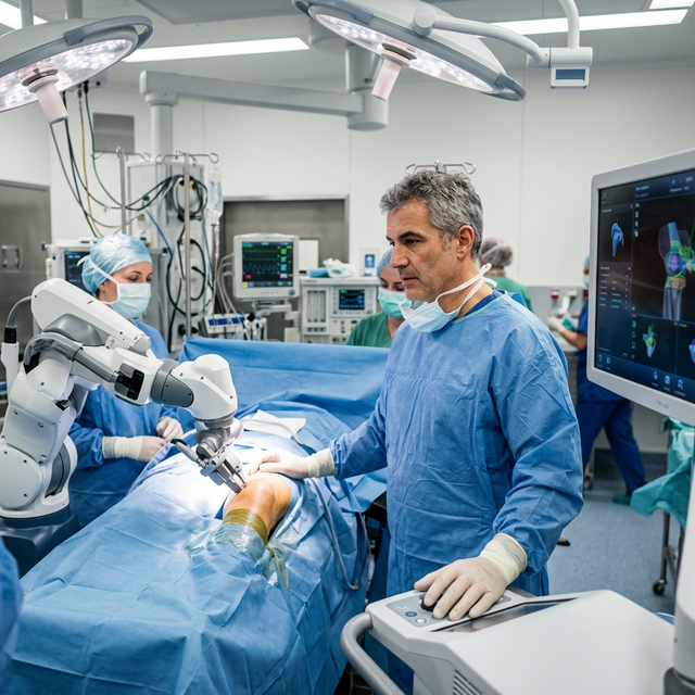 Robotic-assisted knee replacement represents the pinnacle of modern orthopedic surgery. Dr. Ravi Teja utilizes state-of-the-art robotic systems to transcend the limitations of traditional manual surgery. By creating a high-definition 3D virtual model of your unique bone structure before the first incision, we can plan the exact sizing and placement of your implant. During the procedure, the robotic arm provides real-time haptic feedback, ensuring the surgeon stays within the precise boundaries of the plan. It is critical to note that the robot does not perform the surgery; it acts as a precision guide controlled entirely by Dr. Ravi Teja. This results in significantly less soft tissue trauma, better ligament balancing, and an implant that feels more like your natural knee.